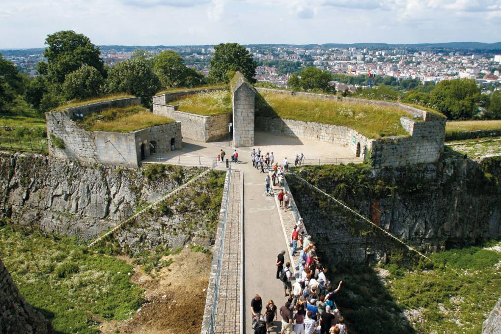 9. Besançon: una escala histórica con su gabarra en la capital del tiempo Besançon es una de las ciudadelas más bellas de Francia, y figura en la lista del Patrimonio Mundial de la UNESCO por las fortificaciones de Vauban. Dominando el casco antiguo, esta fortaleza ofrece un magnífico panorama de Besançon, enclavada en un meandro del Doubs, y de los alrededores. Capital del tiempo, Besançon tiene también un rico pasado relojero. Para descubrirlo, mire hacia arriba para ver los numerosos relojes de sol que adornan las fachadas de la ciudad y visite el Musée du Temps.