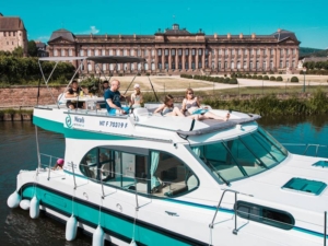 Pilotar una embarcación sin titulación es sencillo y accesible. Todas nuestras embarcaciones son fáciles de manejar, gracias a una ergonomía pensada para principiantes, y cumplen la legislación francesa: no superan los 15 metros de eslora y su velocidad está limitada a 12 km/h. Los motores están estrangulados para garantizar una navegación segura, permitiéndole navegar a una velocidad adaptada a las vías navegables, que a menudo están limitadas a 6 u 8 km/h.